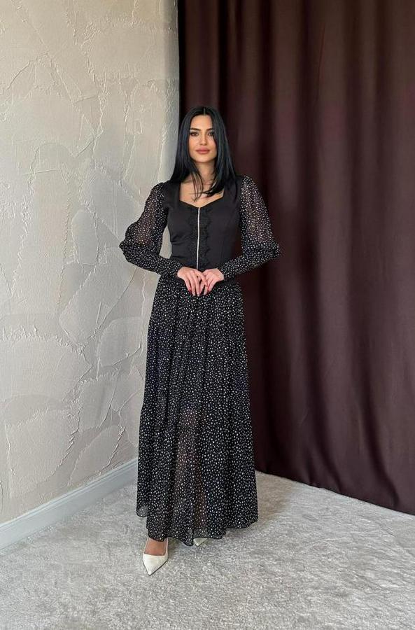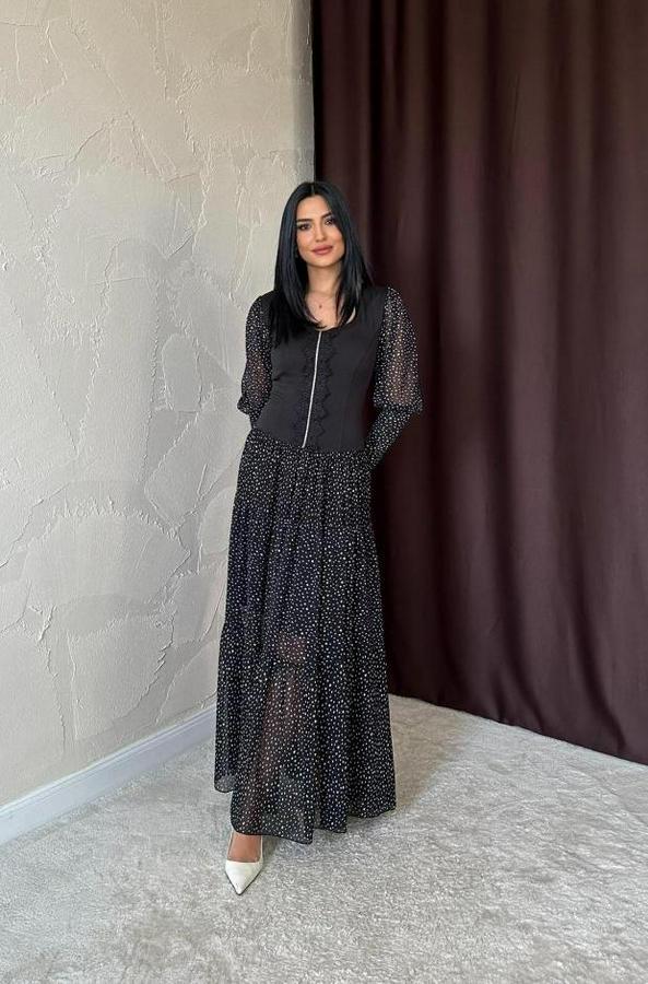 AnasayfaTüm ÜrünlerElbiseSiyah Dantelli Taşlı Şeritli Elbise
