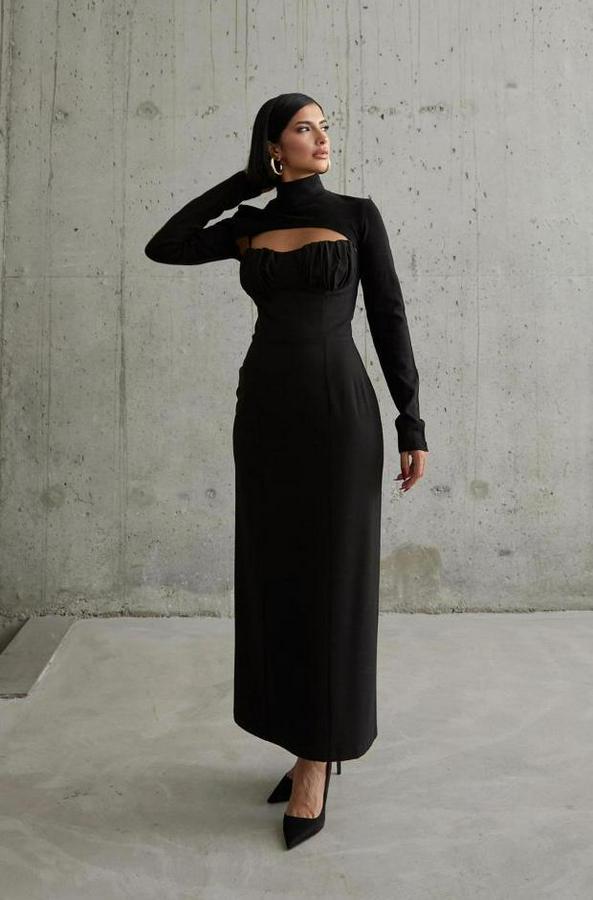 Siyah Göğüs Kuplu Elbise