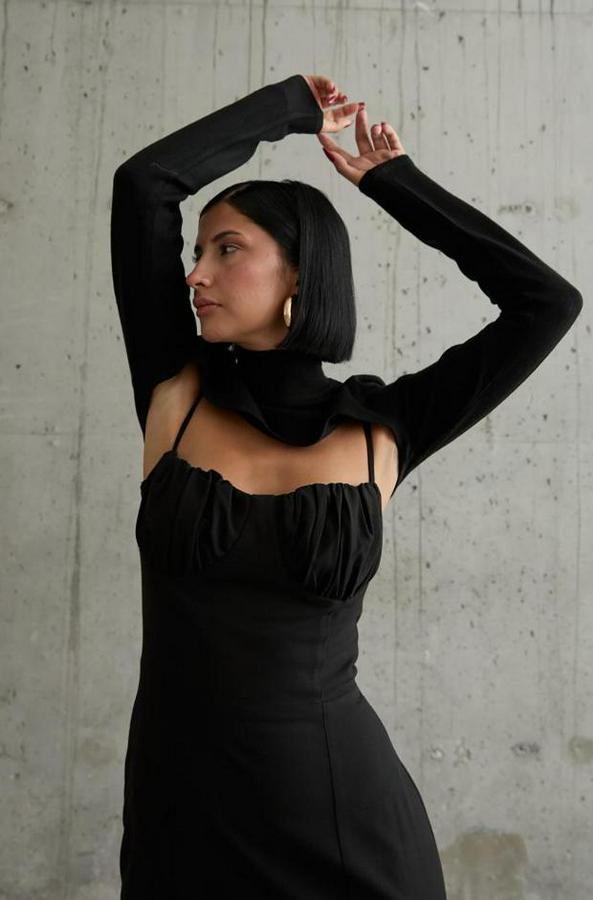 AnasayfaTüm ÜrünlerElbiseSiyah Göğüs Kuplu Elbise