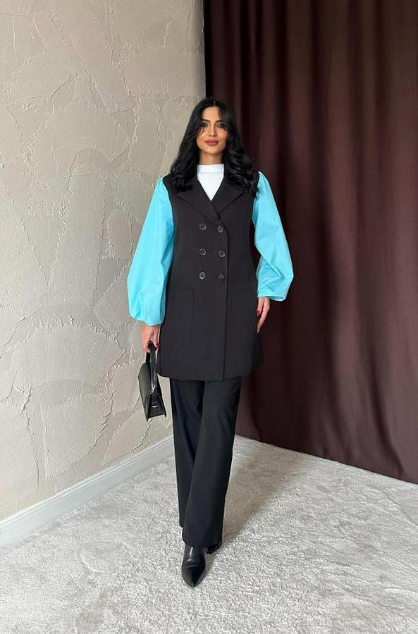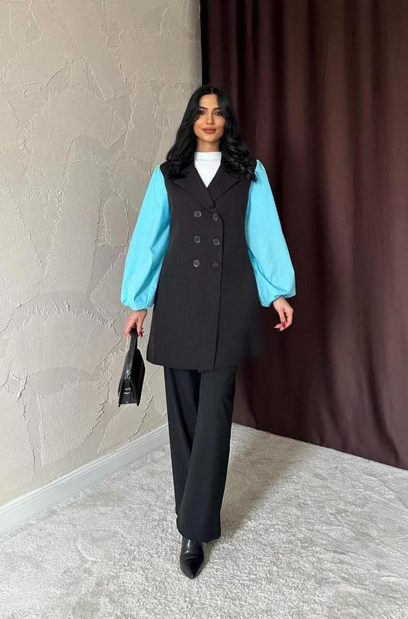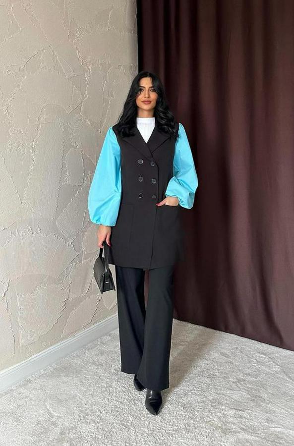 AnasayfaTüm ÜrünlerElbiseSiyah Mavi Garnili Ceket Elbise