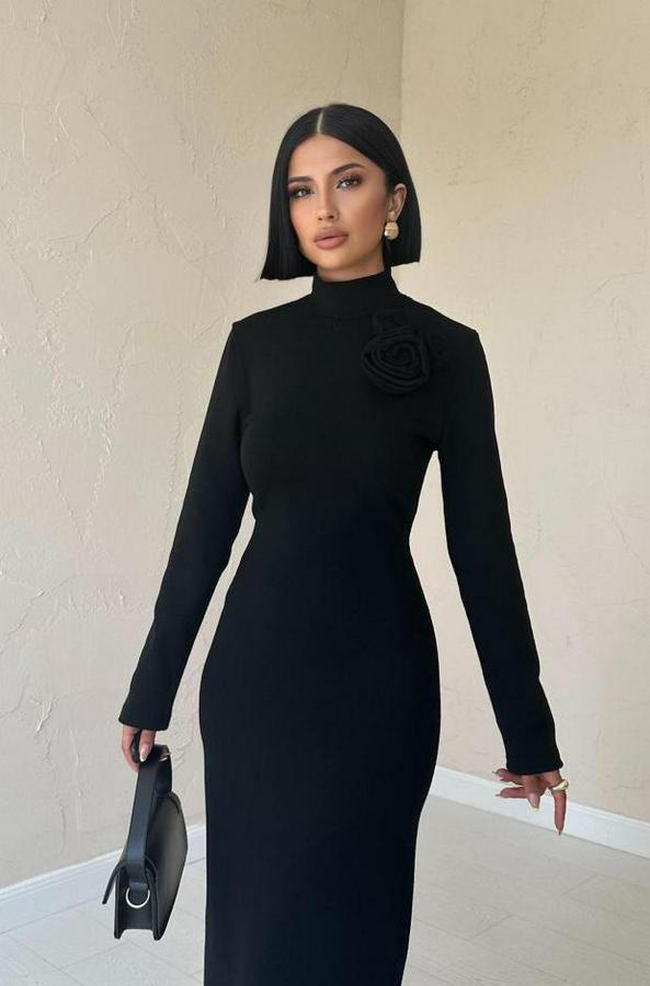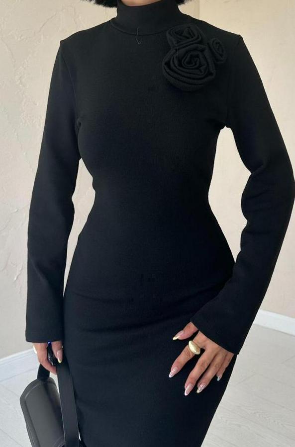 AnasayfaTüm ÜrünlerElbiseSiyah Omzu Güllü Düz Elbise