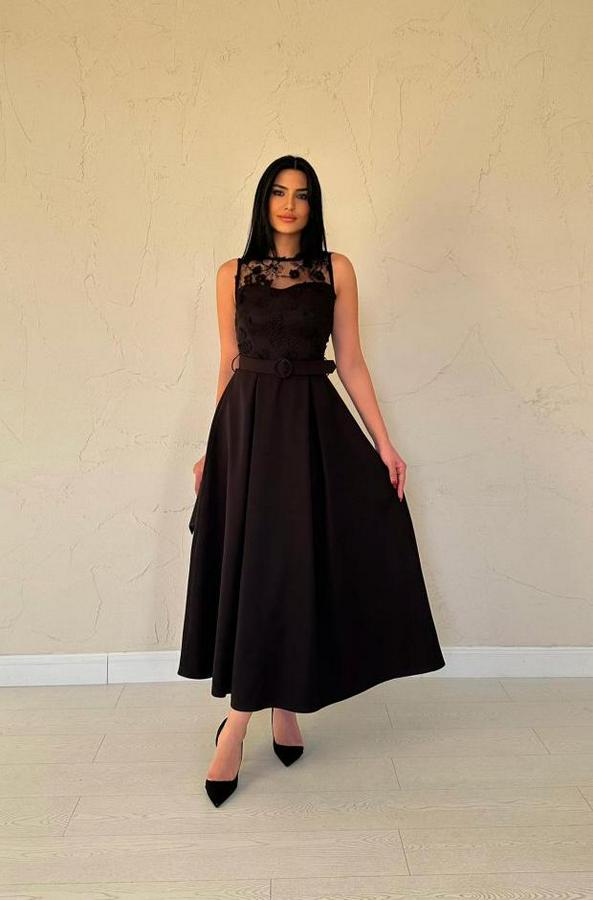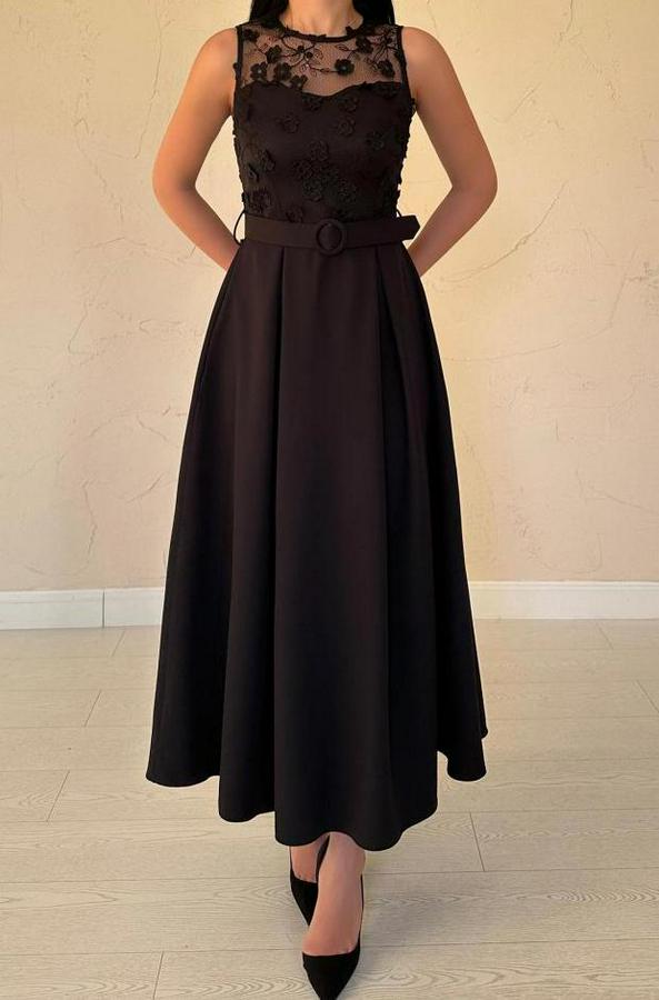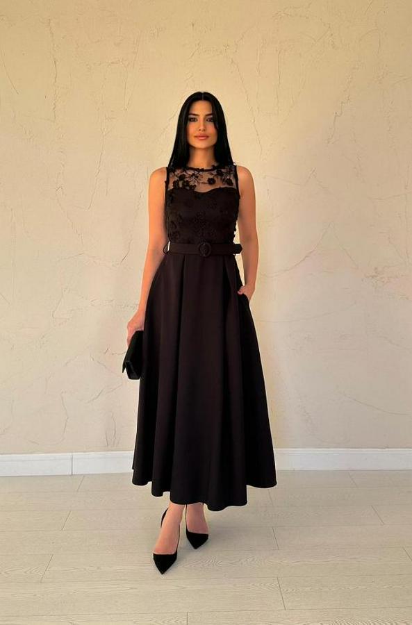 AnasayfaTüm ÜrünlerElbiseSiyah Önü Dantel Detaylı Kemerli Elbise