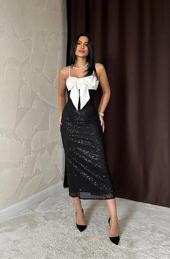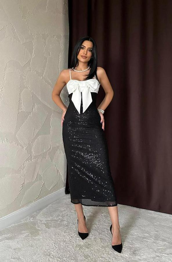 AnasayfaTüm ÜrünlerElbiseSiyah Önü Fiyonklu Garnili Elbise