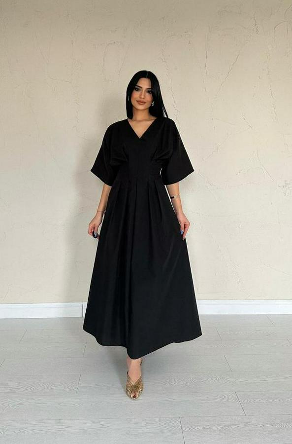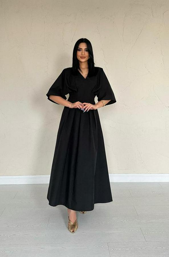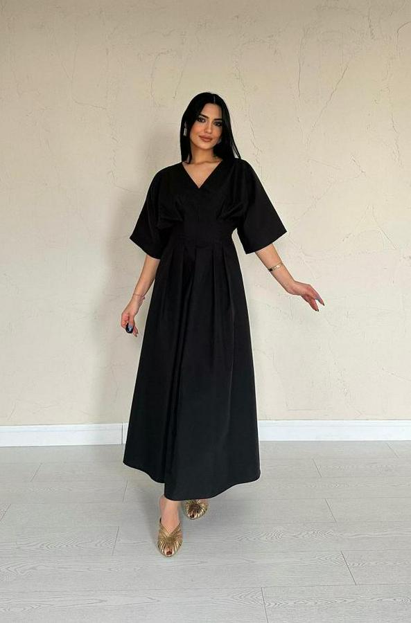 AnasayfaTüm ÜrünlerElbiseSiyah Pileli Uzun Elbise