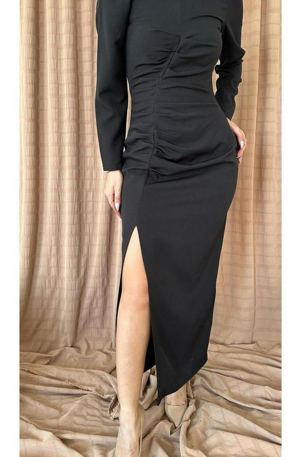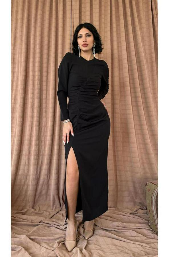 AnasayfaTüm ÜrünlerElbiseSiyah Pileli Yıtmaçlı Uzun Elbise