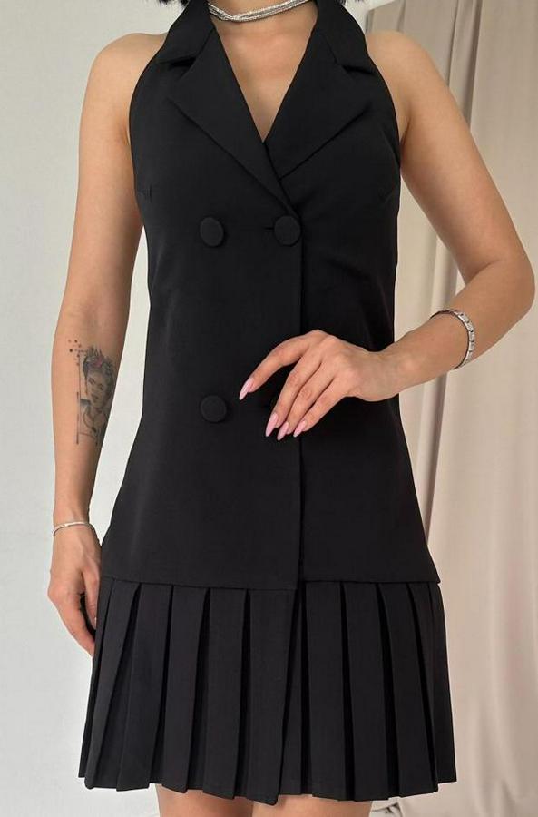 Siyah Sırtı Açık Ceket Yakalı Elbise