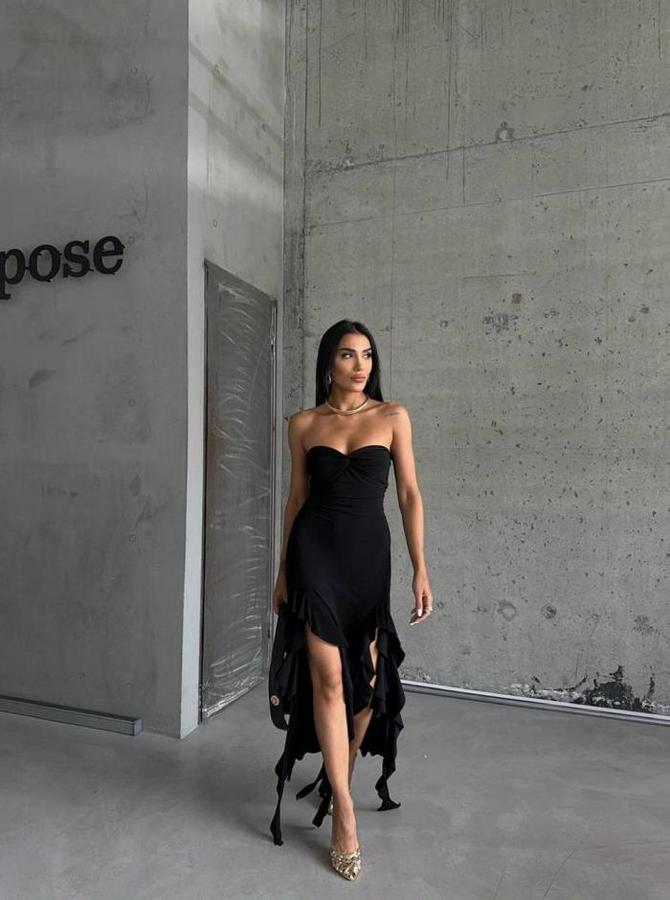 STRABLEZ SANDY ELBİSE YANLARI KATLI - Siyah