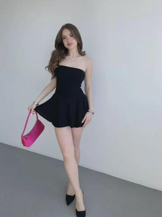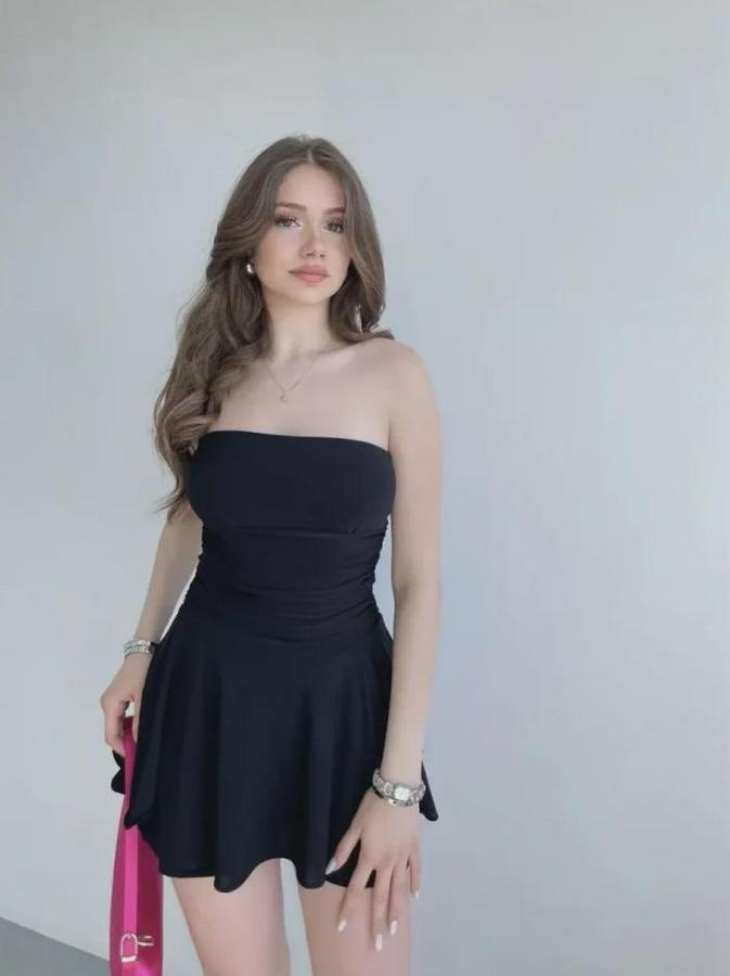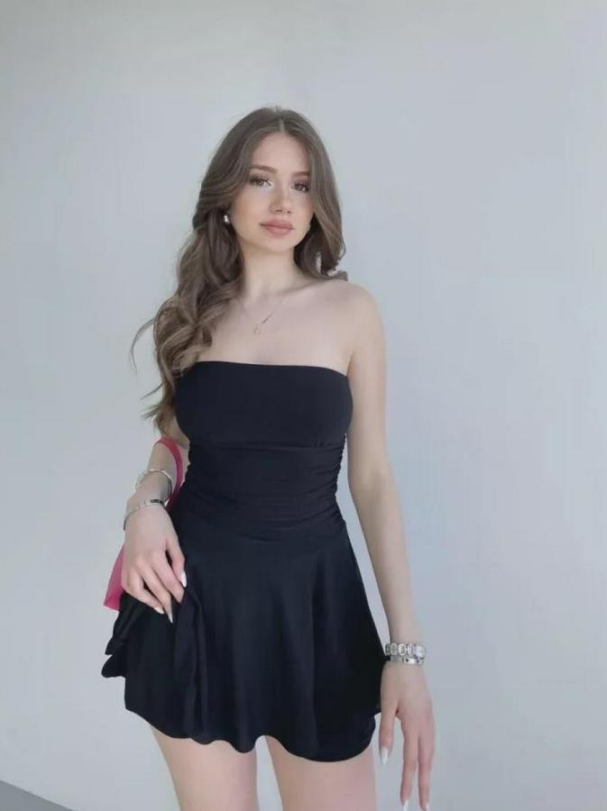 AnasayfaTüm ÜrünlerElbiseStraplez Mini Etek Görünümlü Şortlu Elbise Büzgülü Şık Yazlık