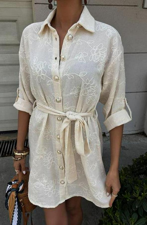 Süzene Nakışlı Ve Gold Düğmeli Elbise 2742