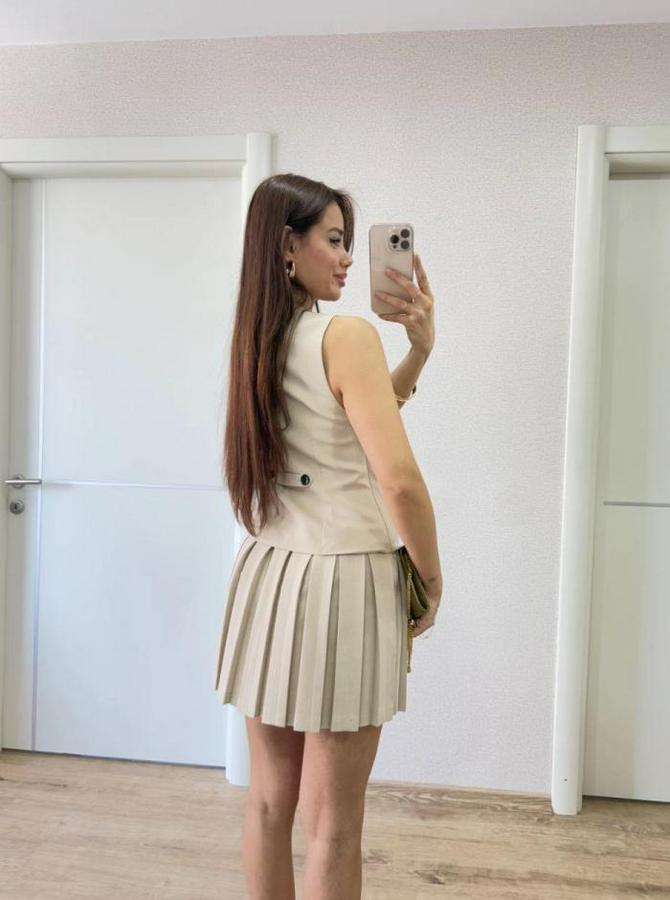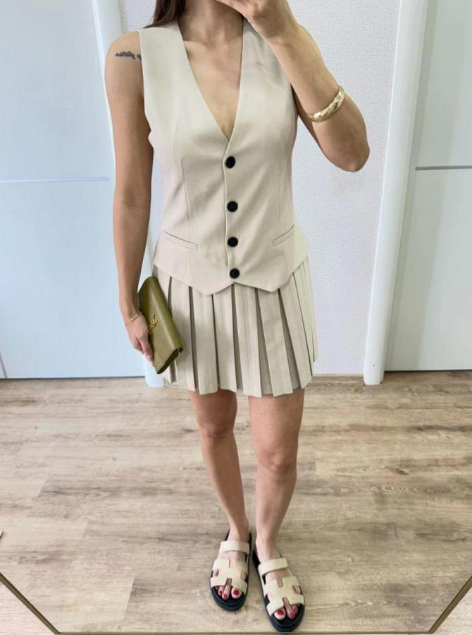 Takım Görünümlu Yelekli Mini Elbise- Bej