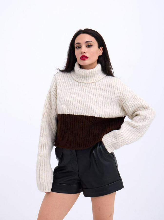 AnasayfaTüm ÜrünlerElbiseTriko Balikçi Çizgili Kazak-Krem-Kahve