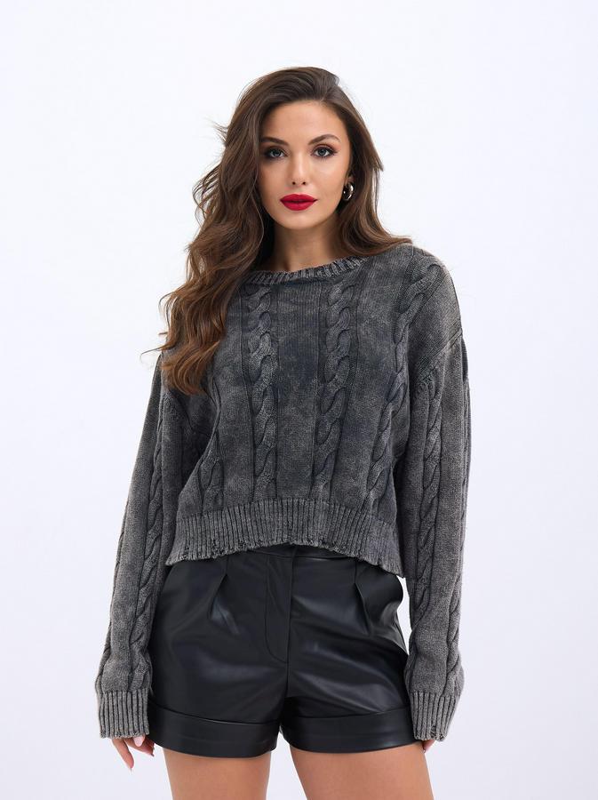 AnasayfaTüm ÜrünlerÜst GiyimBluz & TunikBluzTriko Saç Örgü Kazak-Antrasit