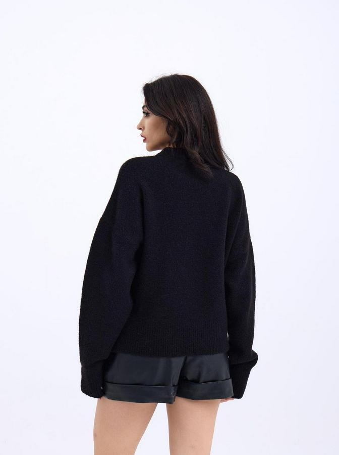 AnasayfaTüm ÜrünlerElbiseTriko Yarim Balikçi Kisa Kazak-Siyah