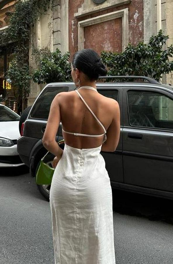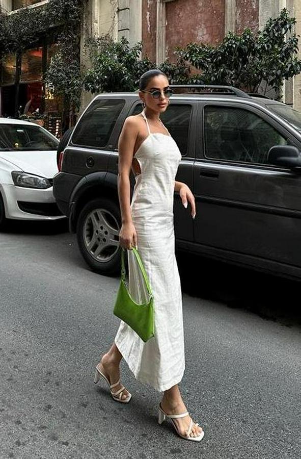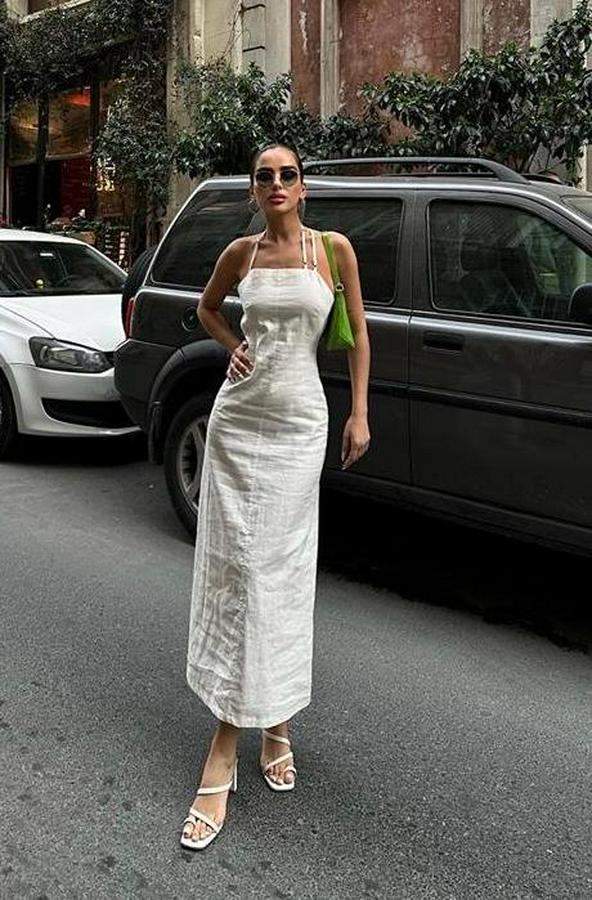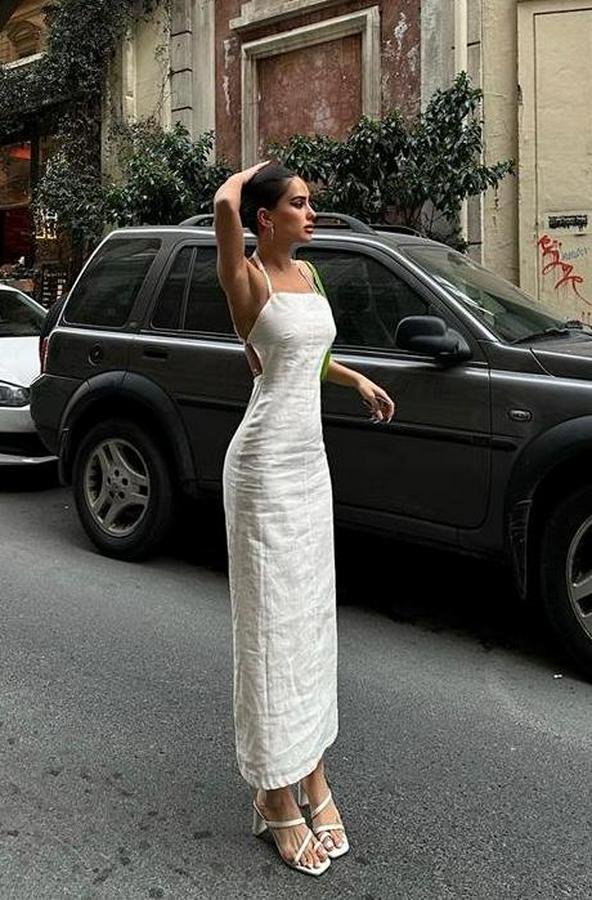 Trisha Sırt Dekolteli Keten Elbise 2496-20 ELBİSE
