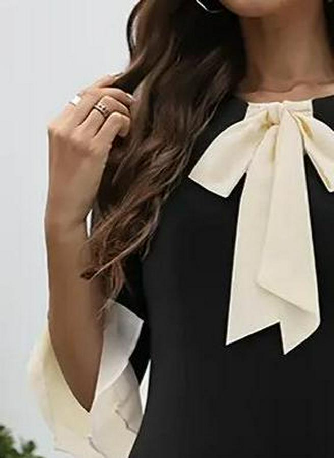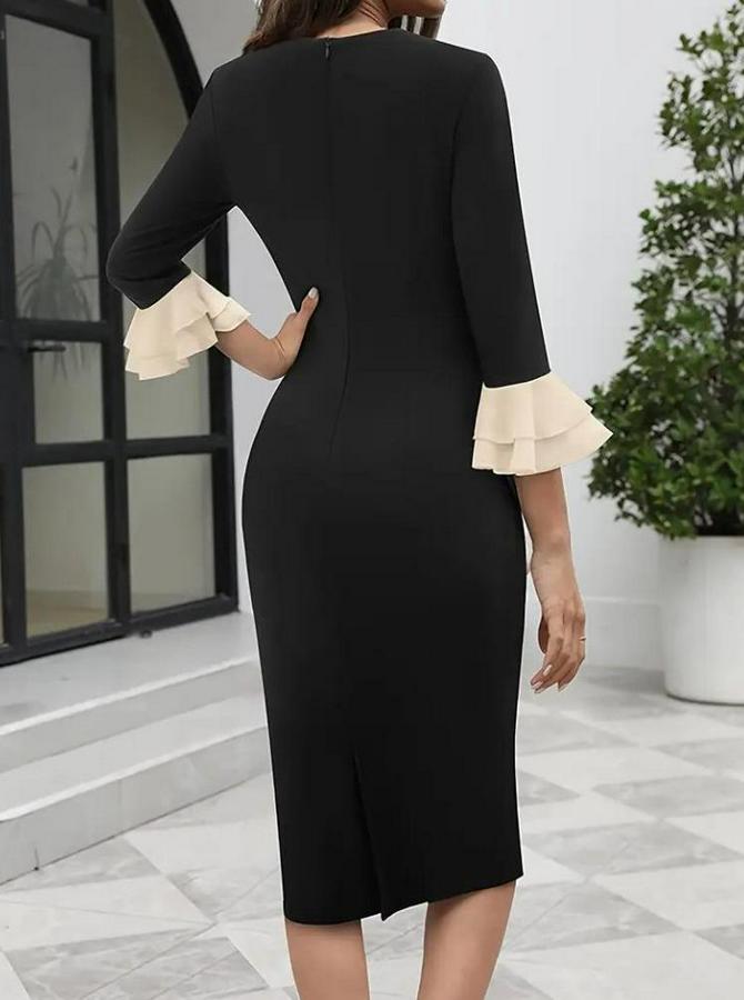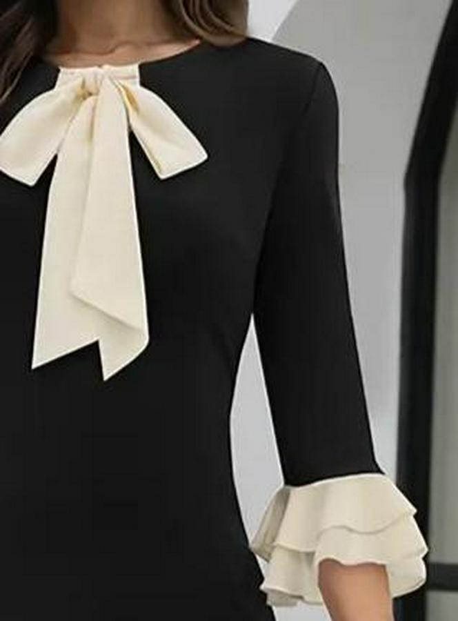 Kadın Truvakar Kollu Fiyonk Yakalı Midi Ithal Krep Elbise