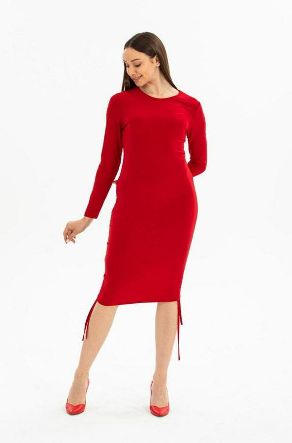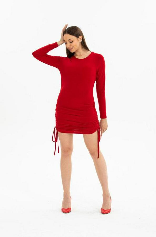 Kadın Uzun Kol Büzgü Detaylı Sandy Kumaş Ayarlanabilir Boy Fırsat Ürün Elbise