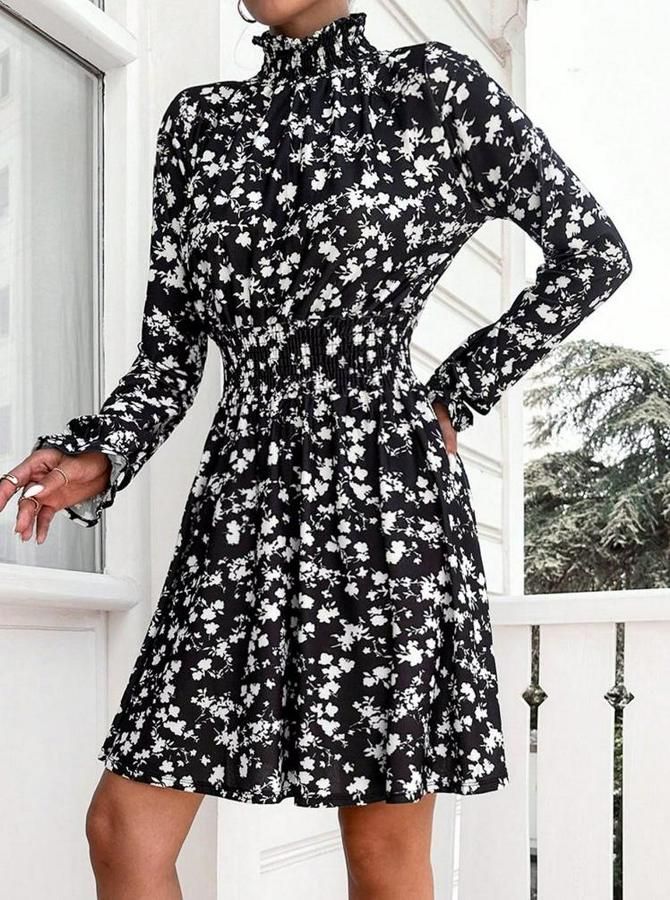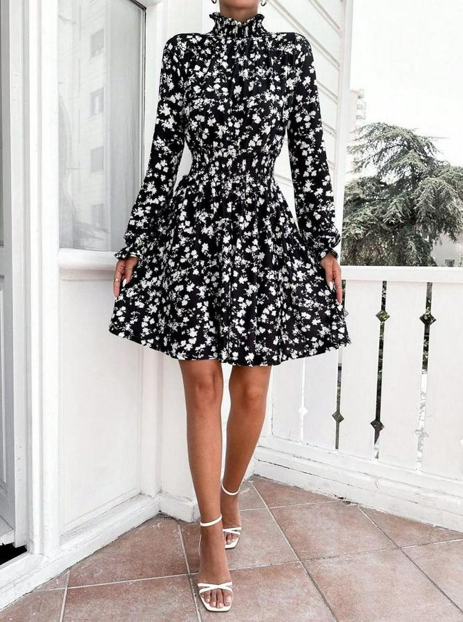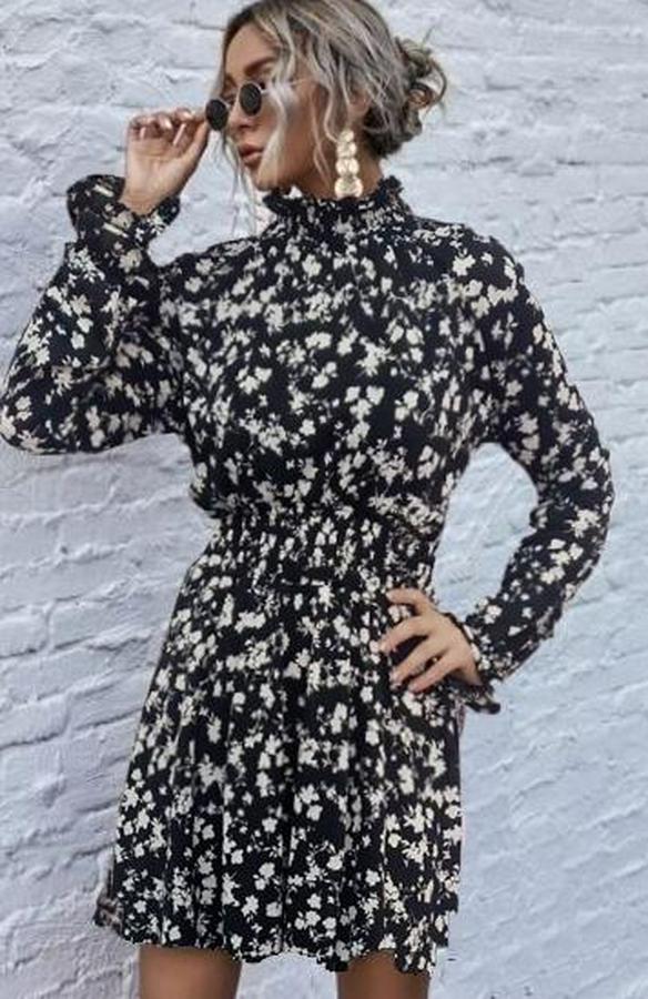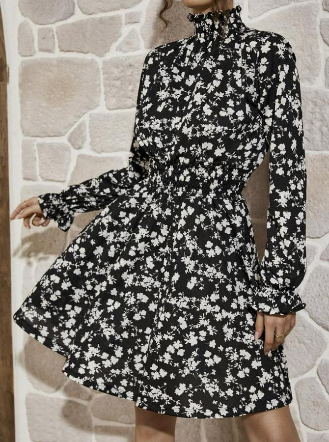 AnasayfaTüm ÜrünlerElbiseUzun Kollu Balıkçı Yaka Çiçek Baskılı Helen Kumaş Elbise