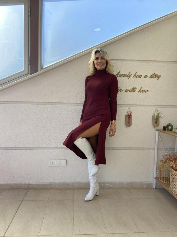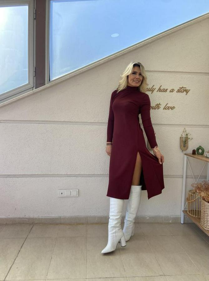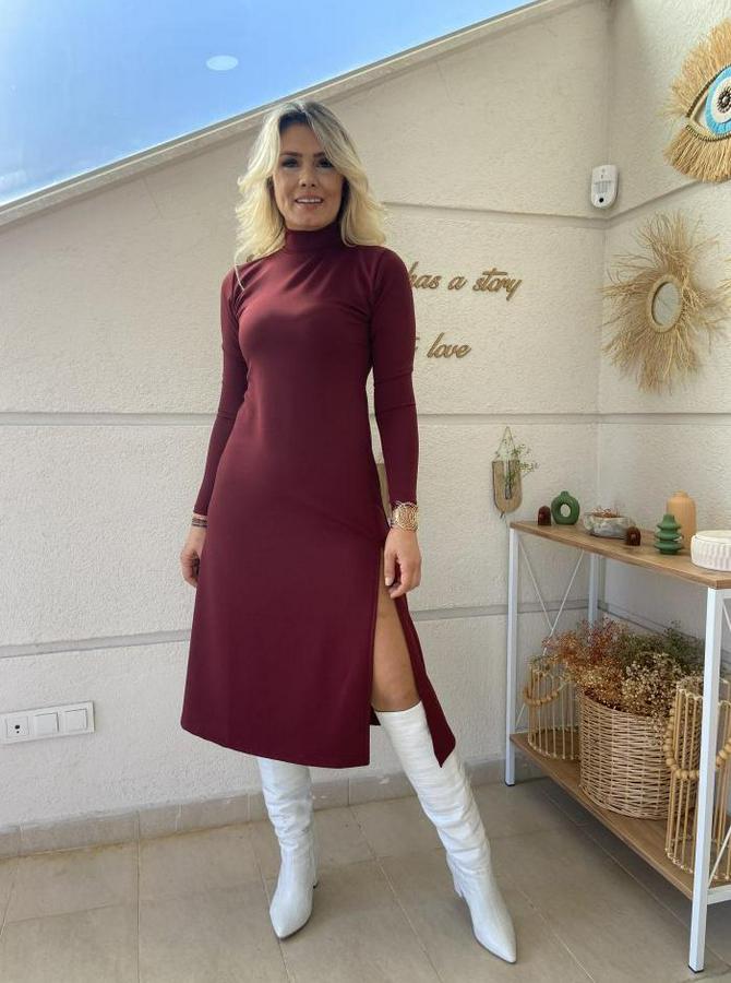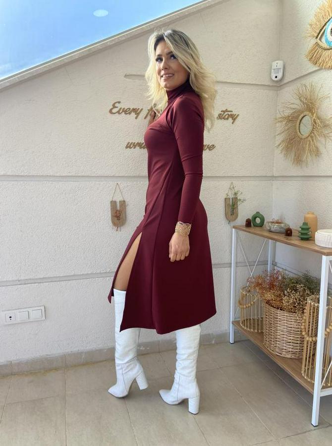 AnasayfaTüm ÜrünlerElbiseUzun Kollu Balıkçı Yaka Derin Yırtmaç Detay Krep Elbise