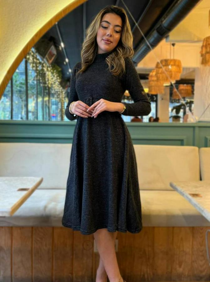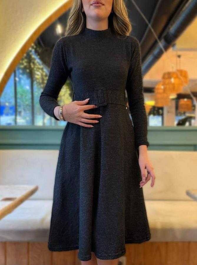 AnasayfaTüm ÜrünlerElbiseUzun Kollu Balıkçı Yaka Kemer Detaylı Yumoş Midi Elbise