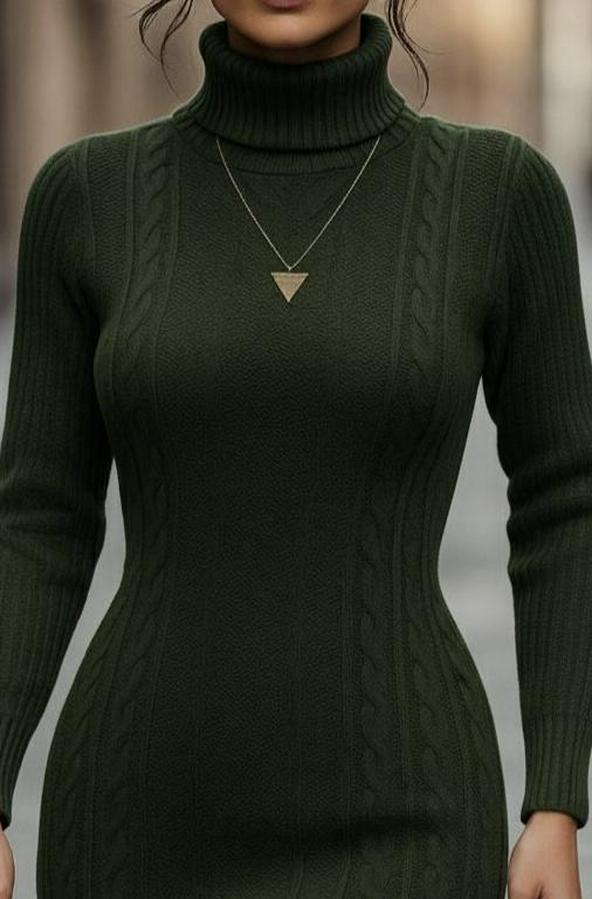 Uzun Kollu Balıkçı Yaka Kısa Triko Elbise