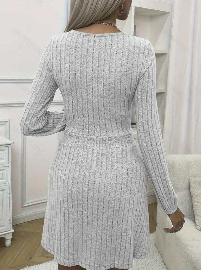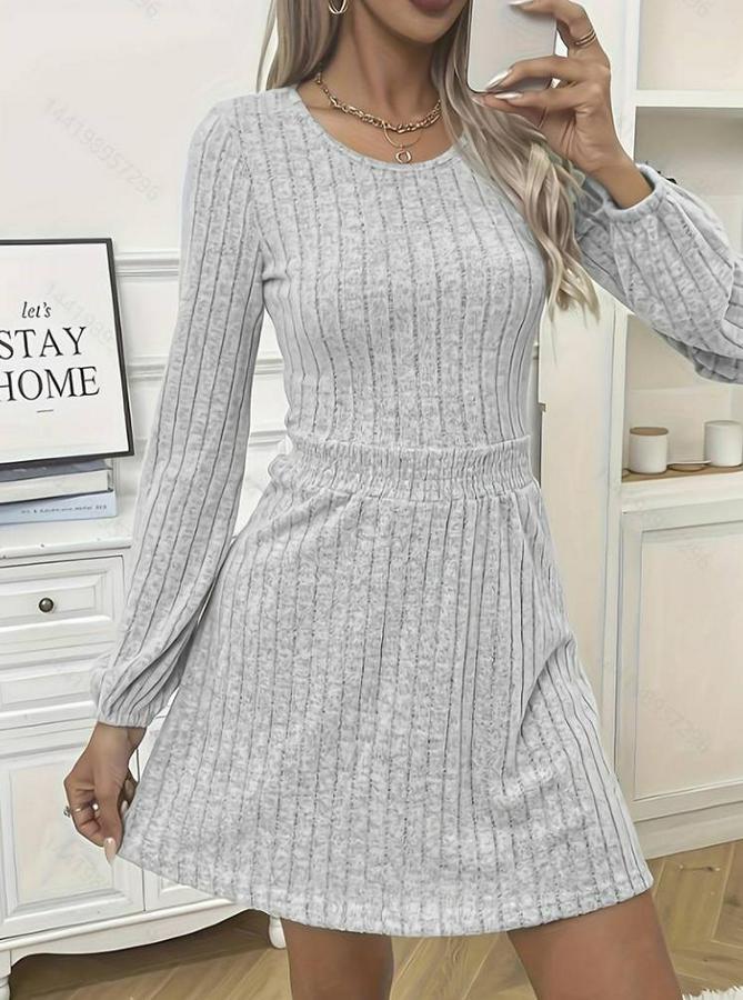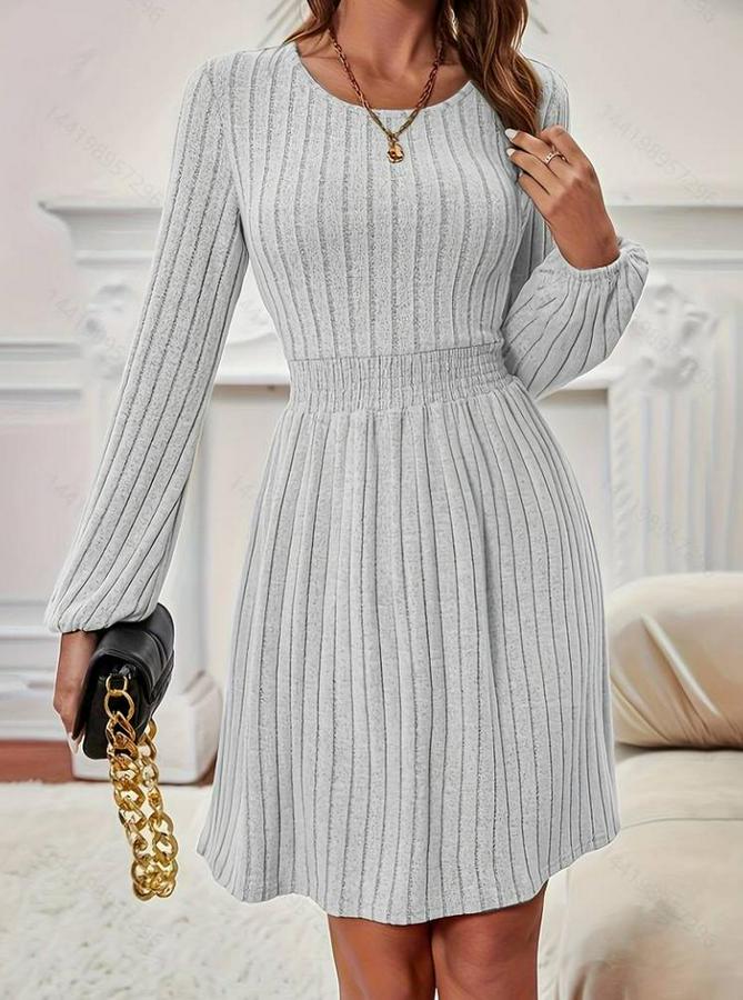 Uzun Kollu Bisiklet Yaka Beli Lastikli Şardonlu Kaşkorse Mini Elbise