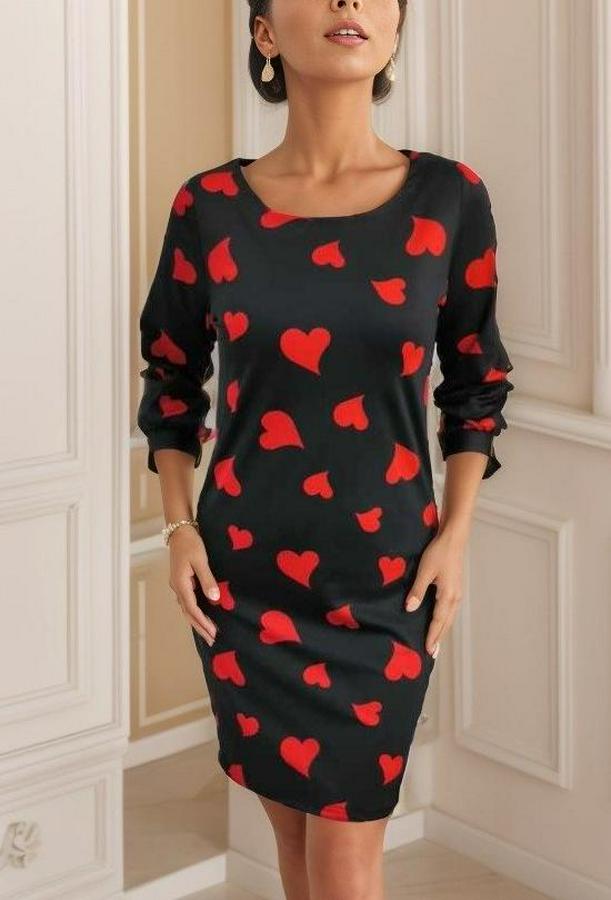 Uzun Kollu Bisiklet Yaka Dalgıç Mini Boy Elbise