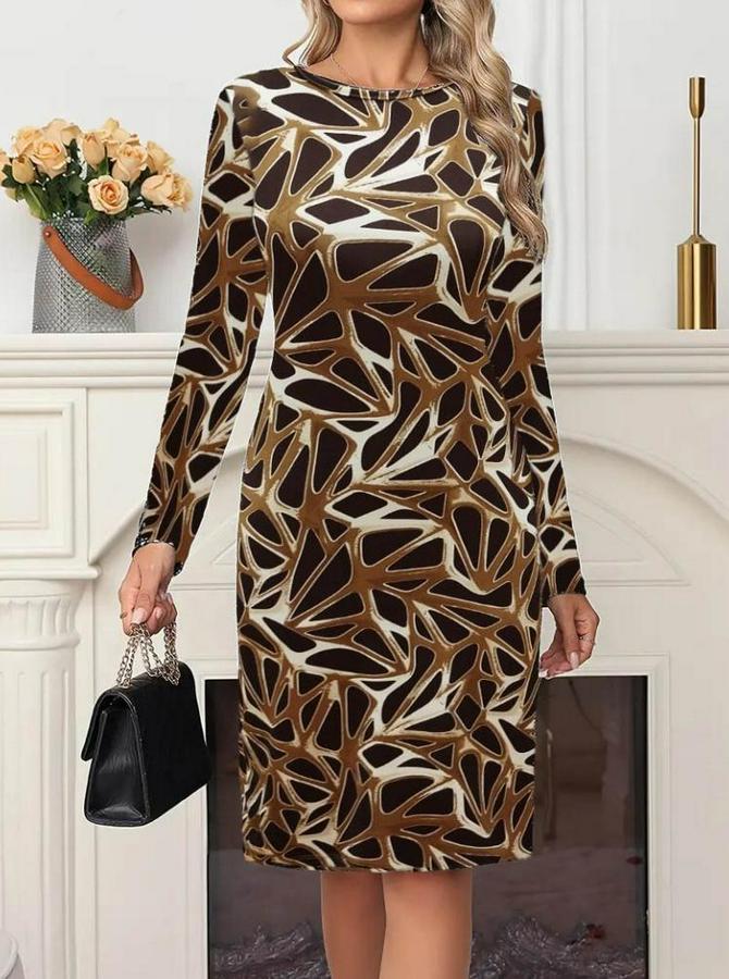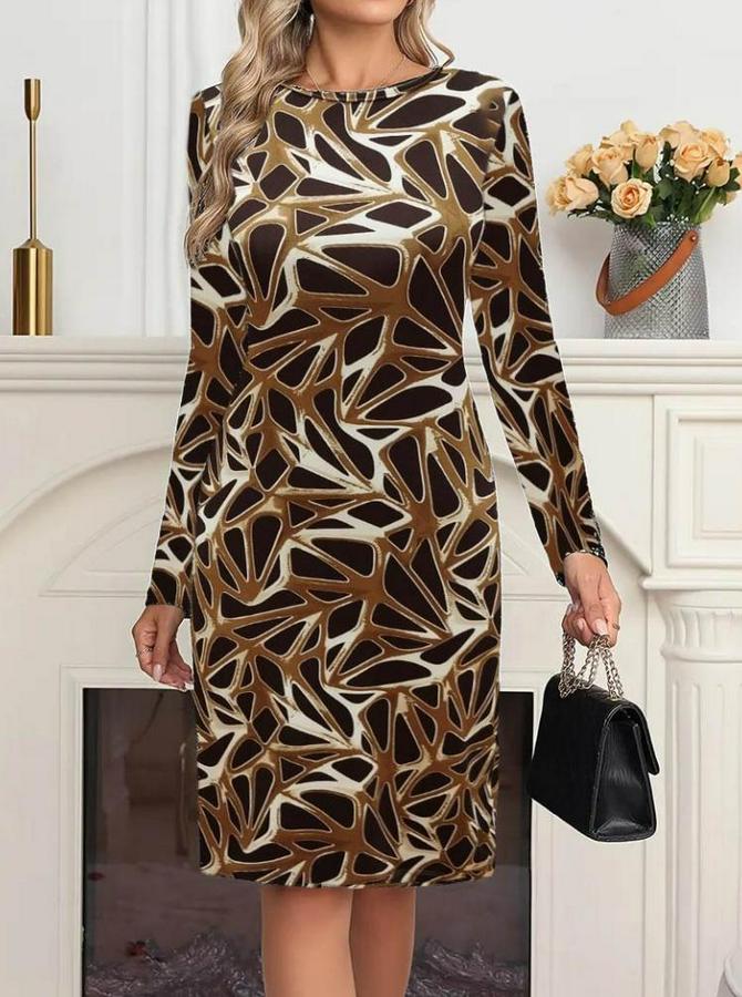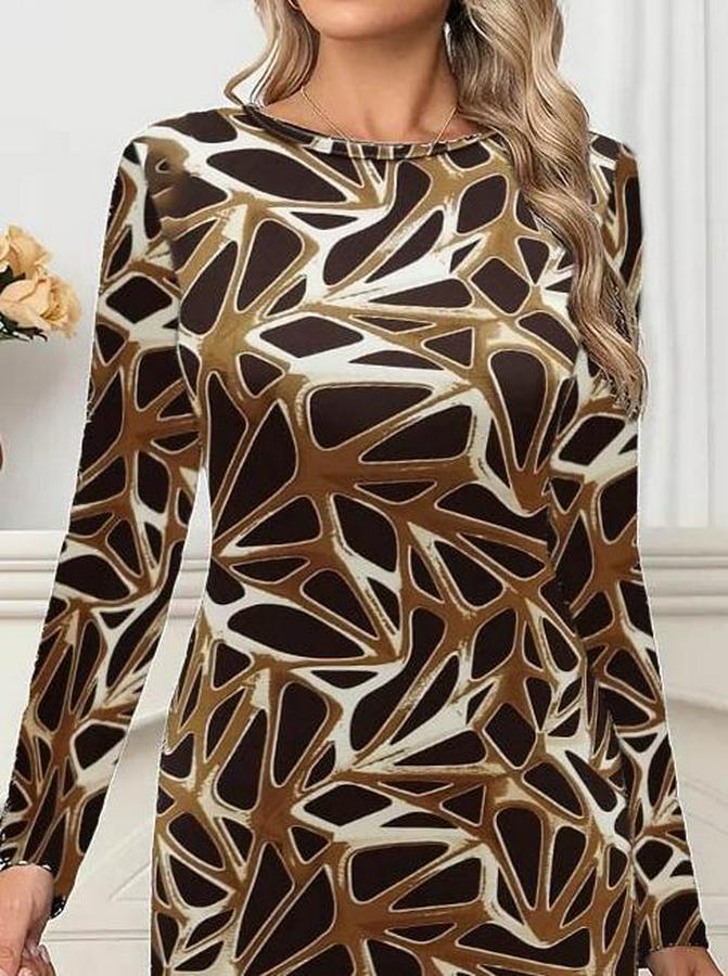 Kadın Uzun Kollu Bisiklet Yaka Desenli Dalgıç Kısa Elbise