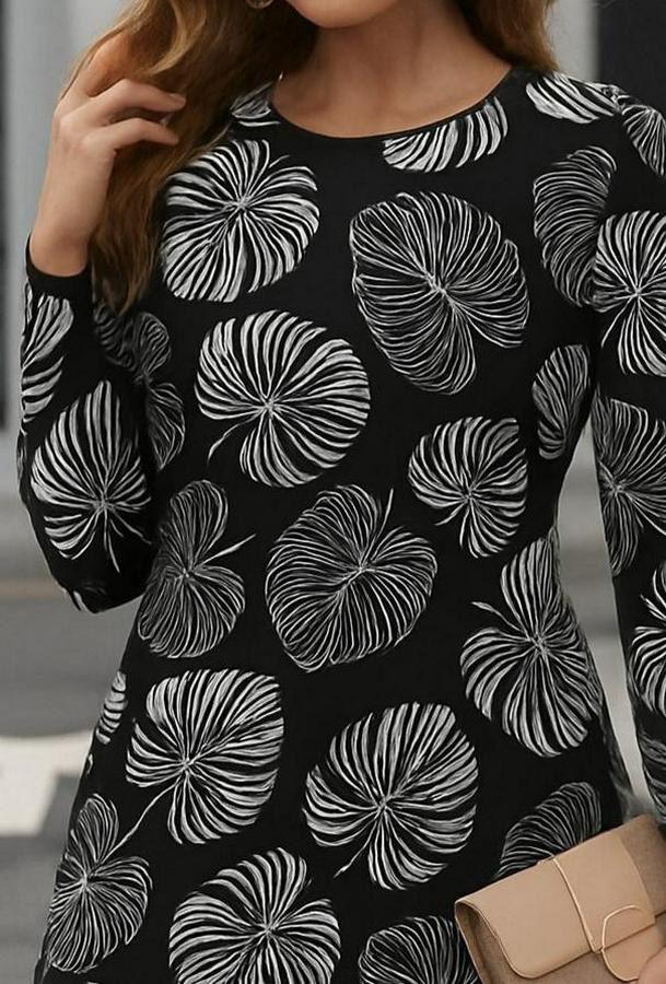 AnasayfaTüm ÜrünlerElbiseUzun Kollu Bisiklet Yaka Desenli Kısa Krep Elbise
