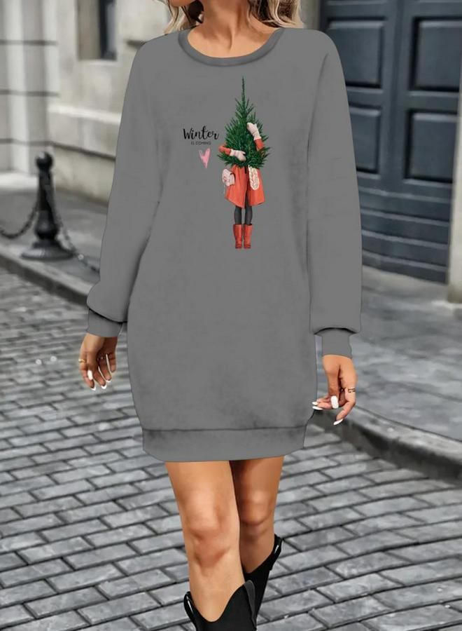 Kadın Uzun Kollu Bisiklet Yaka Desenli Kısa Viskon Iki Iplik Elbise