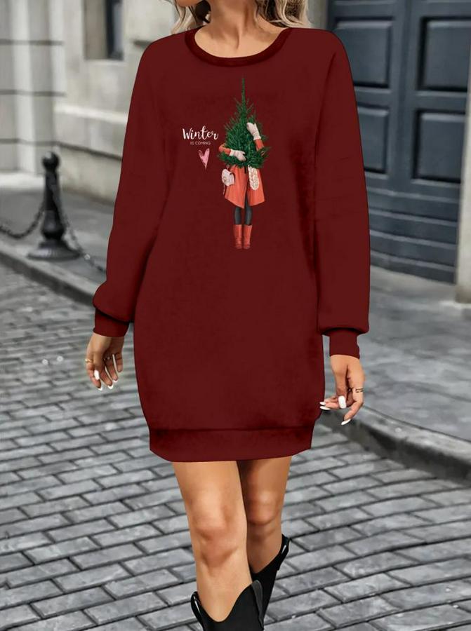 Kadın Uzun Kollu Bisiklet Yaka Desenli Kısa Viskon Iki Iplik Elbise