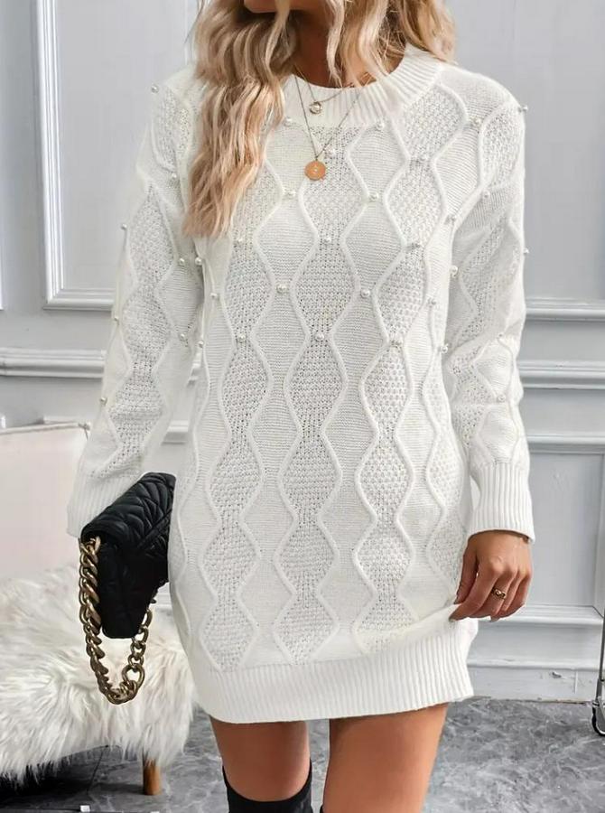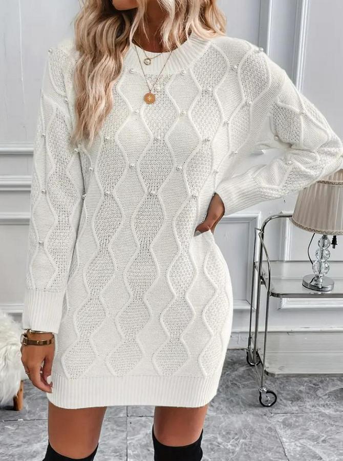 AnasayfaTüm ÜrünlerElbiseUzun Kollu Bisiklet Yaka Desenli Triko Elbise
