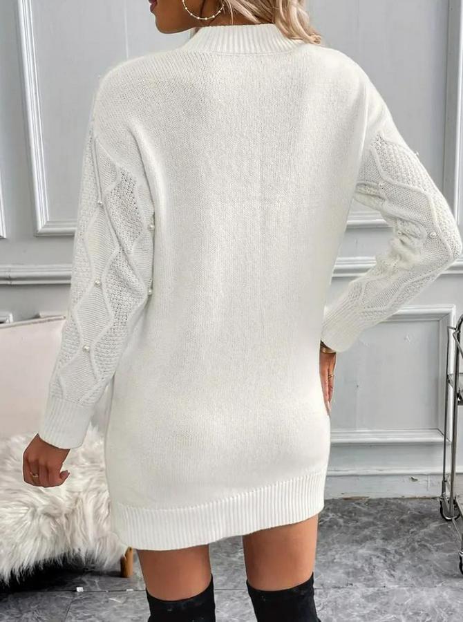 Uzun Kollu Bisiklet Yaka Desenli Triko Elbise