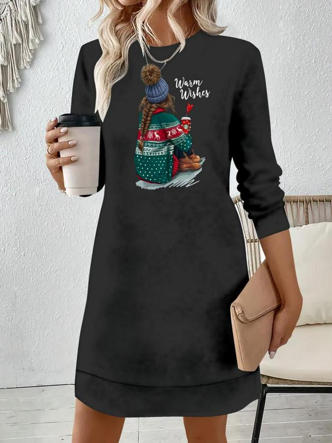 Kadın Uzun Kollu Bisiklet Yaka Desenli Viskon Iki Iplik Elbise