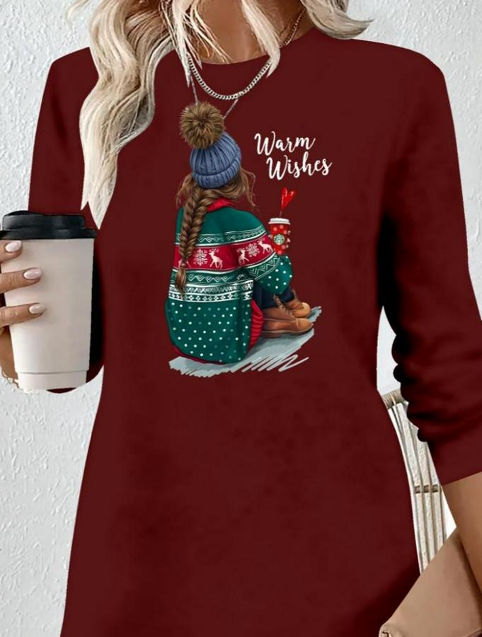Kadın Uzun Kollu Bisiklet Yaka Desenli Viskon Iki Iplik Elbise