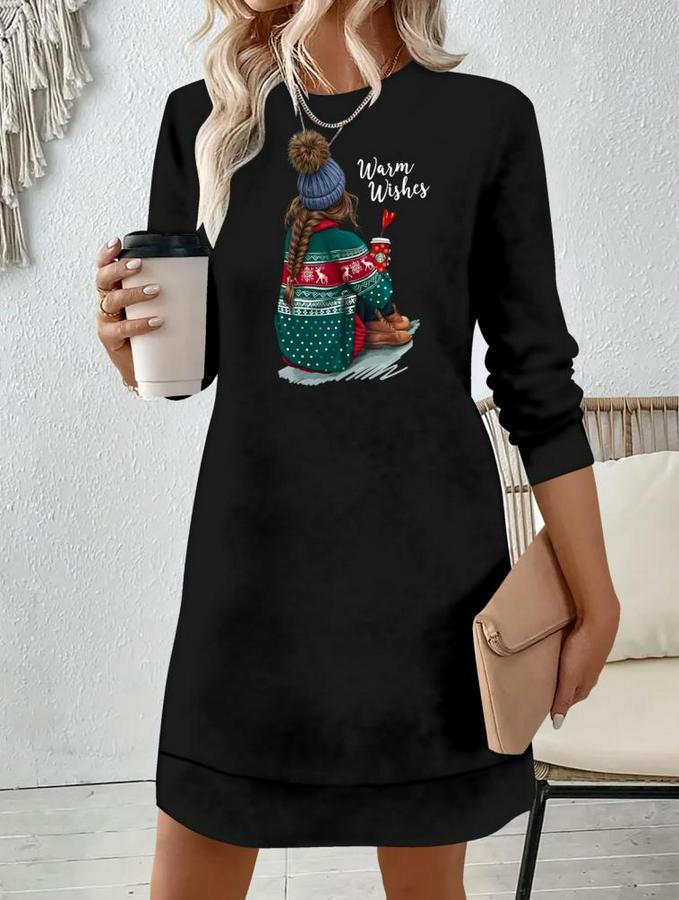 Kadın Uzun Kollu Bisiklet Yaka Desenli Viskon Iki Iplik Elbise