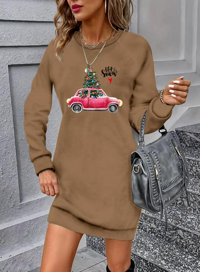 Kadın Uzun Kollu Bisiklet Yaka Desenli Viskon Iki Iplik Elbise