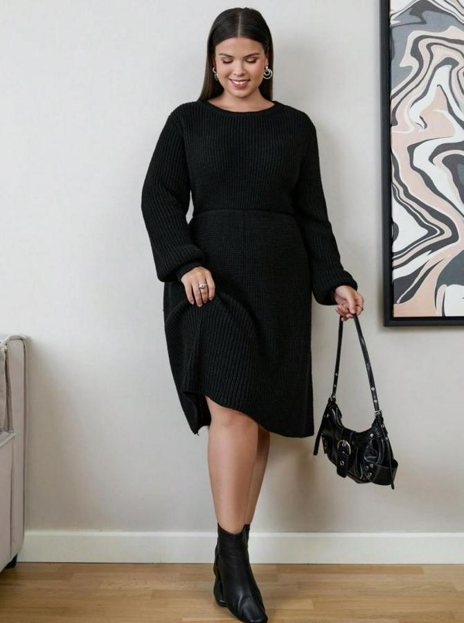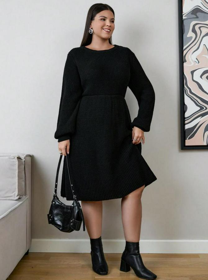 AnasayfaTüm ÜrünlerElbiseUzun Kollu Bisiklet Yaka Eteği Kloş Triko Elbise