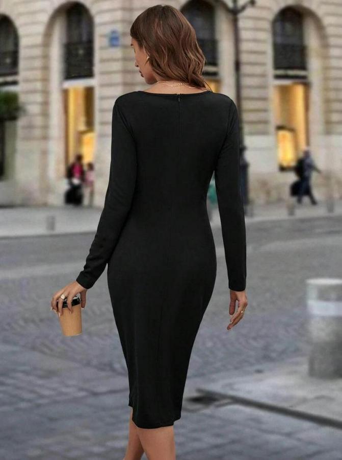 AnasayfaTüm ÜrünlerElbiseUzun Kollu Bisiklet Yaka Fermuar Detaylı Yırtmaçlı Midi Krep Elbise