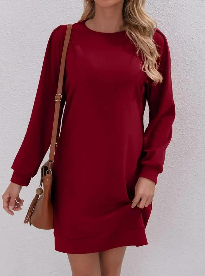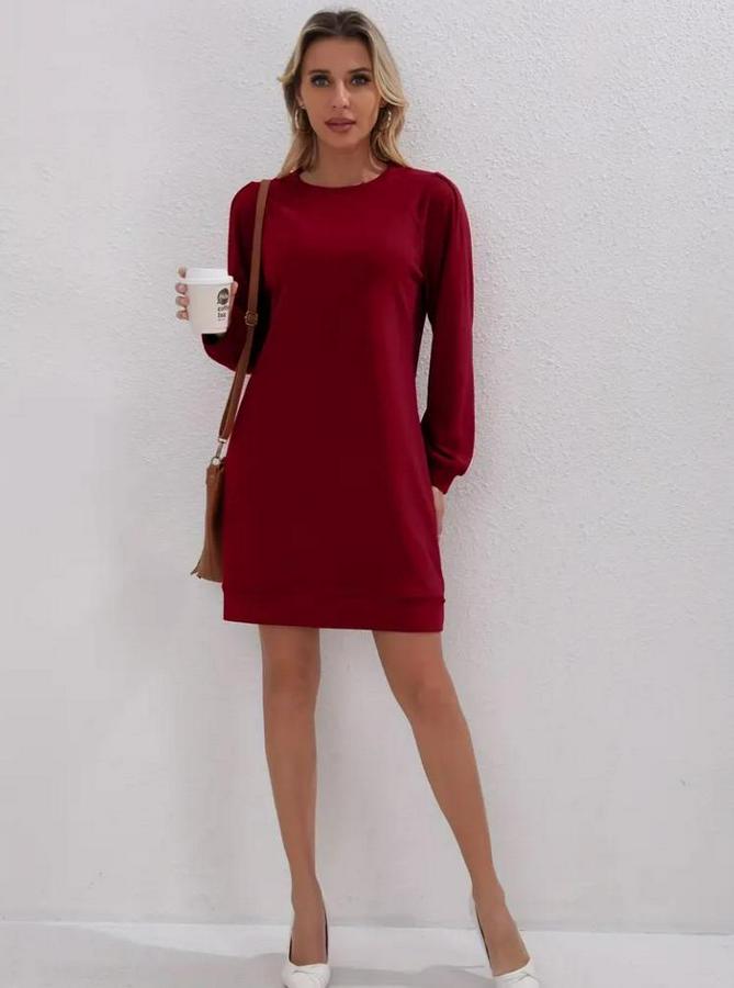 Uzun Kollu Bisiklet Yaka Iki Iplik Elbise