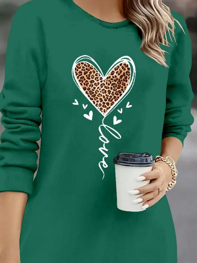 Kadın Uzun Kollu Bisiklet Yaka Kalp Desenli Kısa Viskon Elbise