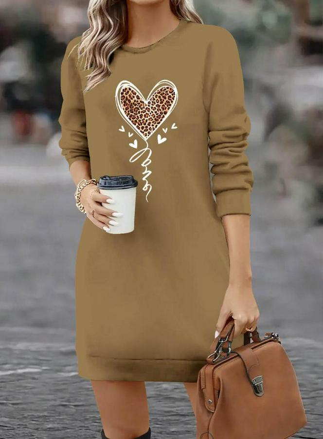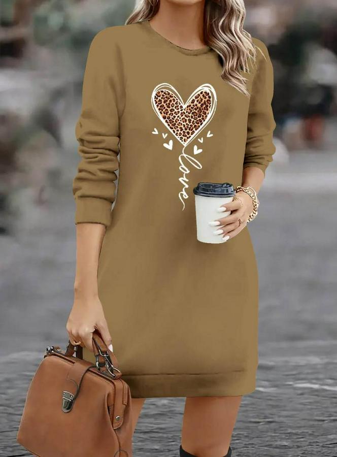 AnasayfaTüm ÜrünlerElbiseUzun Kollu Bisiklet Yaka Kalp Desenli Kısa Viskon Elbise