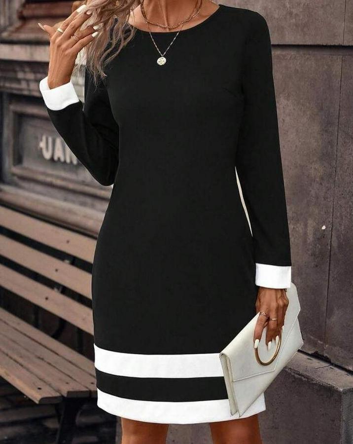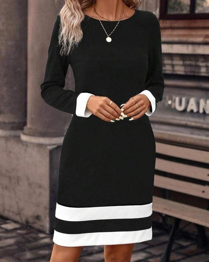 AnasayfaTüm ÜrünlerElbiseUzun Kollu Bisiklet Yaka Kol Ve Tek Ucu Şeritli Ithal Krep Midi Elbise
