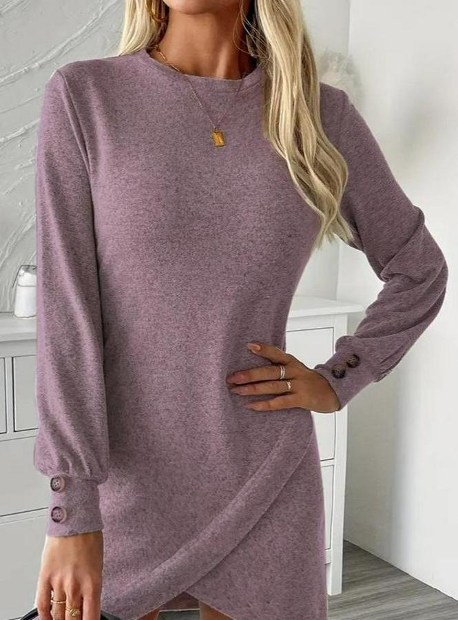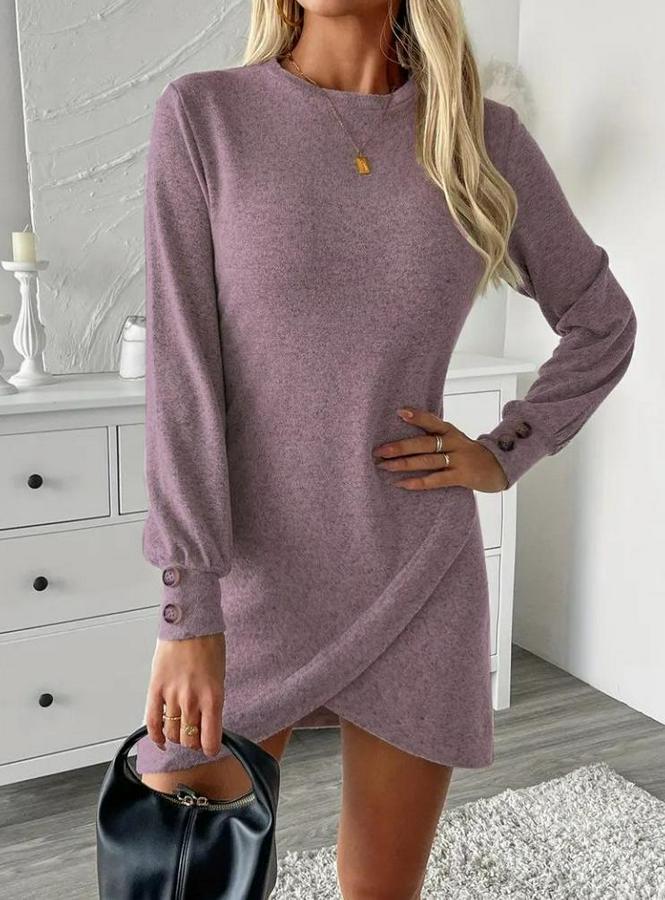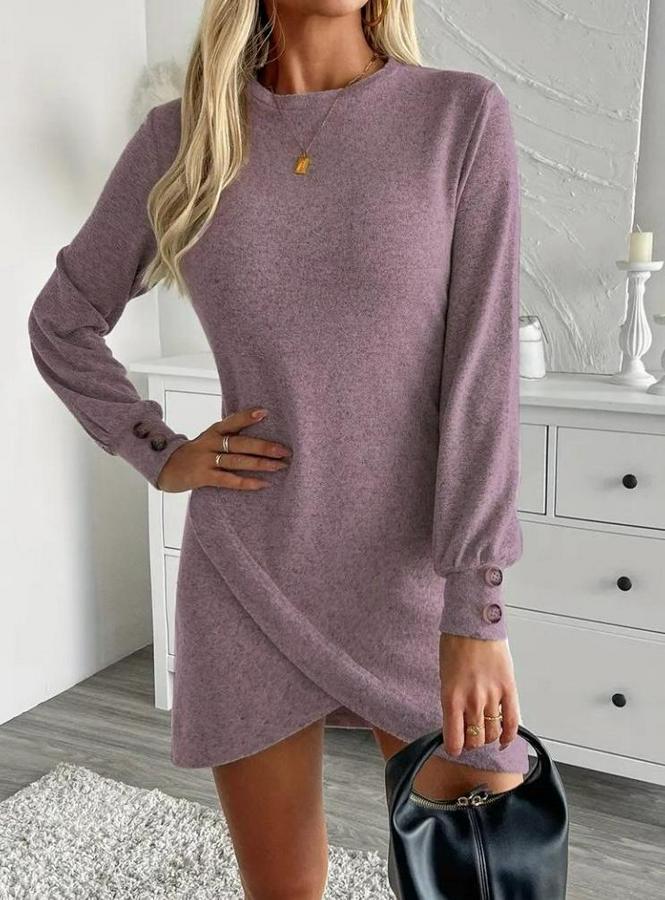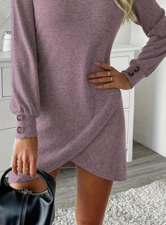 AnasayfaTüm ÜrünlerElbiseUzun Kollu Bisiklet Yaka Önden Asimetrik Kesim Detaylı Mini Yumoş Elbise