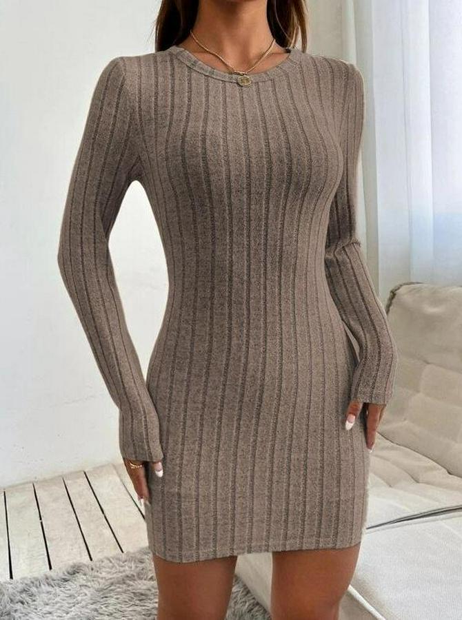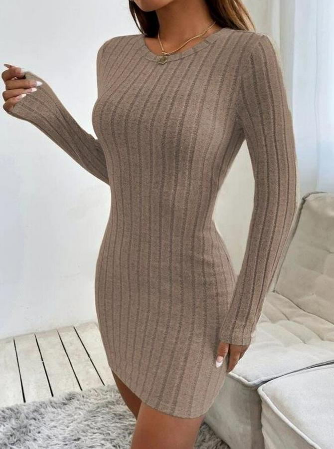 Kadın Uzun Kollu Bisiklet Yaka şardonlu Kalın Fitilli Kaşkorse Mini Boy Elbise