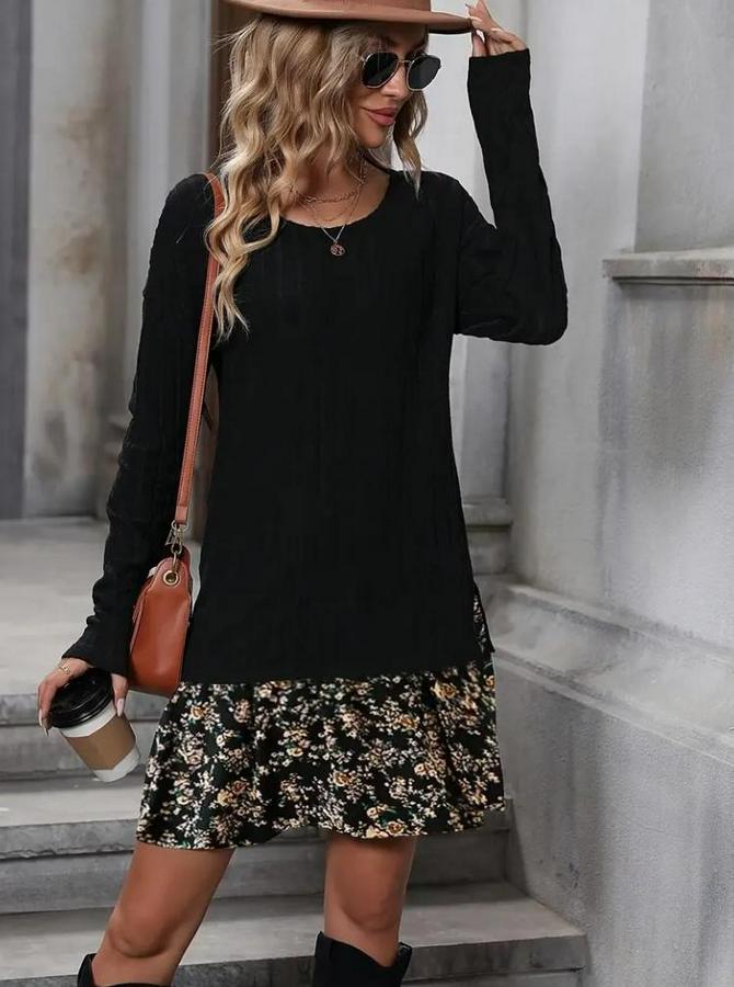 AnasayfaTüm ÜrünlerElbiseUzun Kollu Bisiklet Yaka Şardonlu Kaşkorse Bluz Ve Süprem Etek