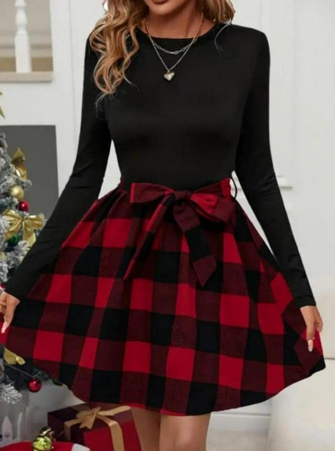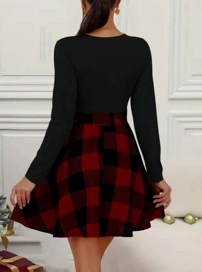 AnasayfaTüm ÜrünlerElbiseUzun Kollu Bisiklet Yaka Üst Viskon Alt Ekose Kısa Elbise