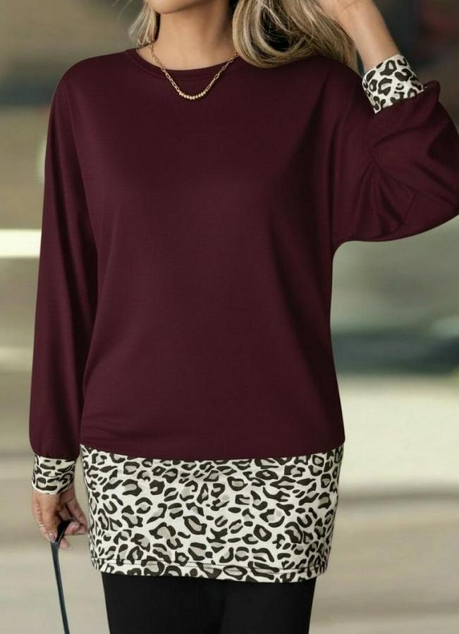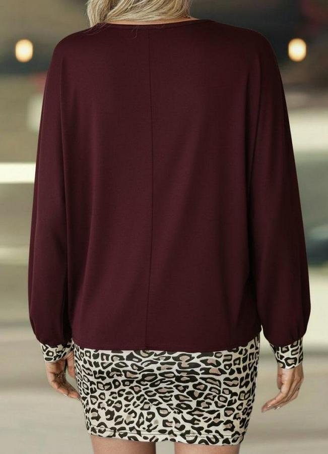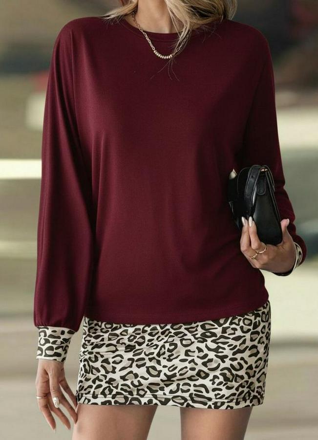 Kadın Uzun Kollu Bisiklet Yaka üst Viskon Iki Iplik Alt Leopar Desenli Mini Elbise