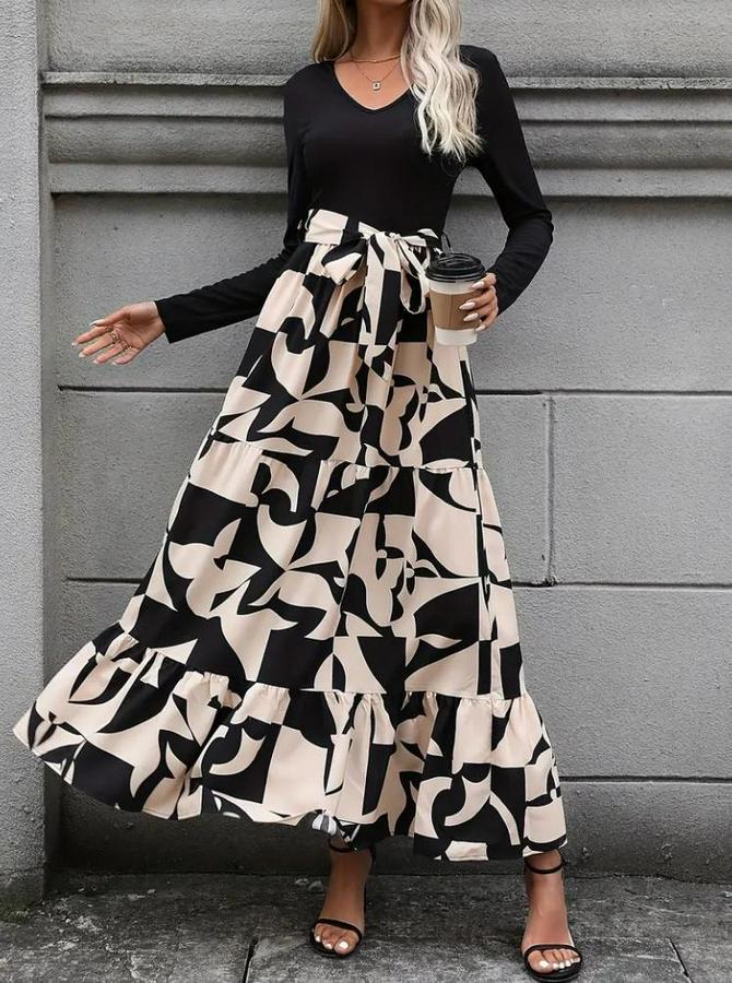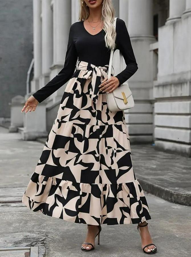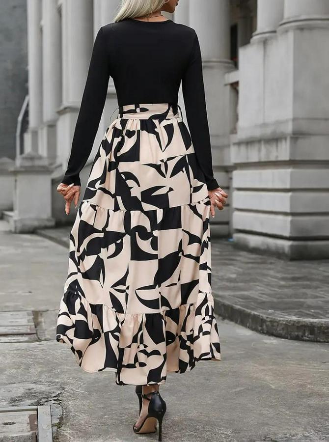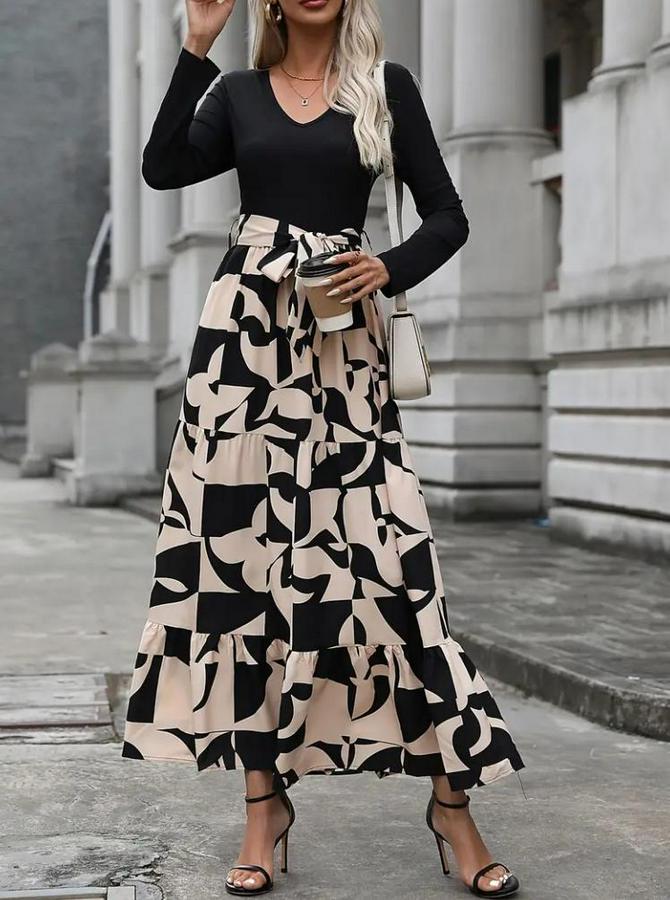 Kadın Uzun Kollu Bisiklet Yaka Uzun Elbise