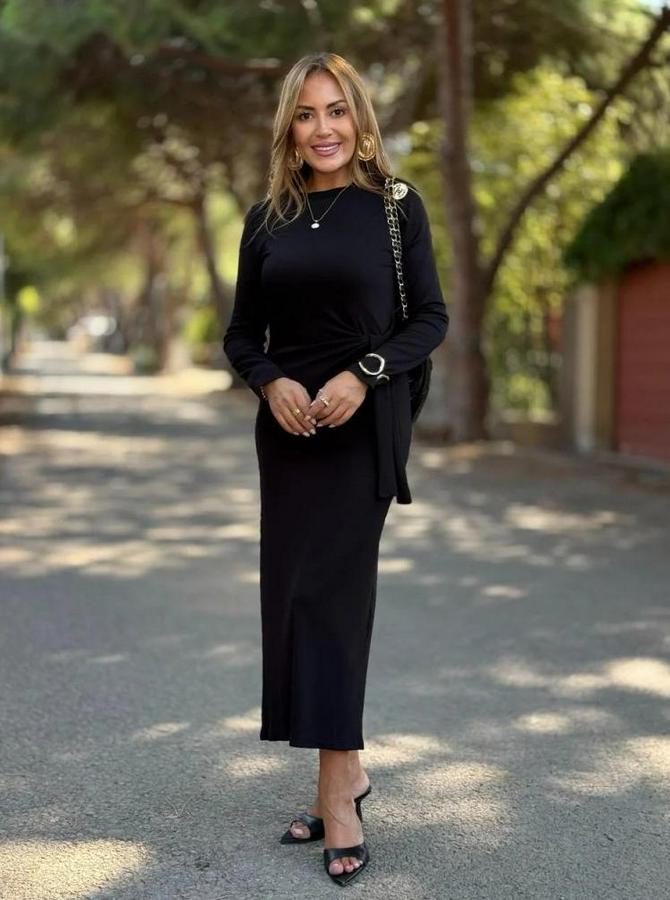Kadın Uzun Kollu Bisiklet Yaka Yandan Bağlamalı Uzun Modal Elbise