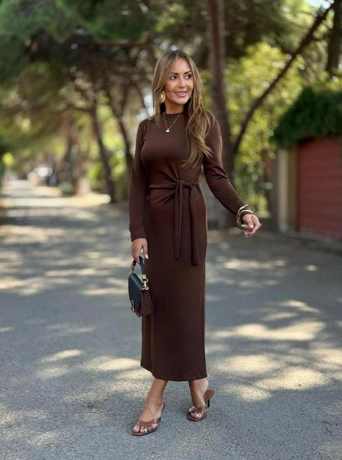 AnasayfaTüm ÜrünlerElbiseUzun Kollu Bisiklet Yaka Yandan Bağlamalı Uzun Modal Elbise